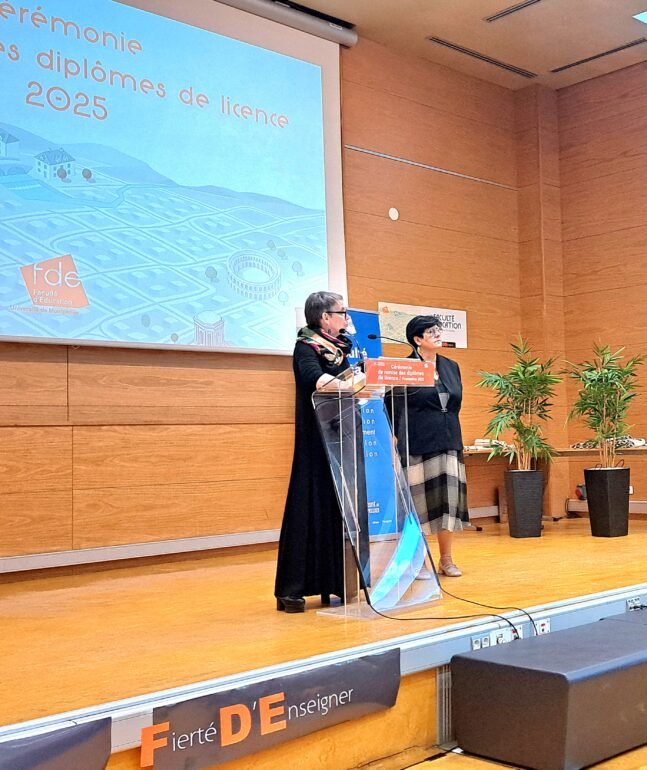 Cérémonie de remise des diplômes de licence aux étudiants de la Faculté d’éducation de l’Université de Montpellier Agnès Perrin-Doucey et Sephora Allouch