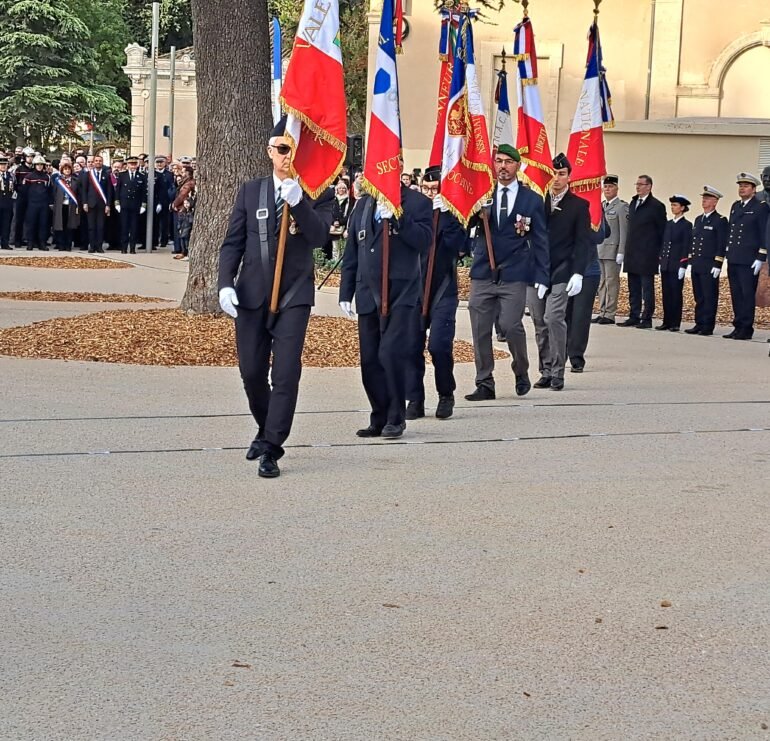 Arrivé des porte-drapeaux – Cérémonie de commémoration de l’Armistice du 11 novembre 1918