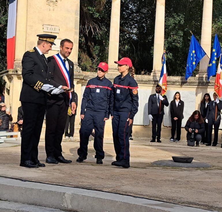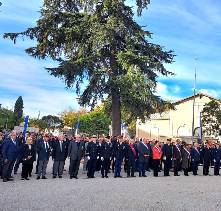 La cérémonie du Souvenir au monument aux morts s’est déroulée avec la participation des porte-drapeaux, des associations patriotiques, des sapeurs-pompiers, de la gendarmerie, mais on remarque aussi la présence d’élèves qui rencontrent l’Histoire, les symboles et les institutions de la République. La commémoration de l’Armistice de 1918, est devenue peu à peu un symbole de mémoire et de cohésion nationale, permettant de délivrer des messages comme la culture de la paix. Le Jour du Souvenir a été institué pour commémorer la fin de la 1ere Guerre mondiale, il y a cependant toujours cette question qui revient, pourquoi y -a-t-il eu cette guerre qui a fait tant de morts ? Pour finir cet entretien, le maire a fit un retour sur le symbole du bleuet et sur sa mission de solidarité.