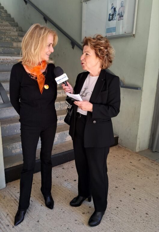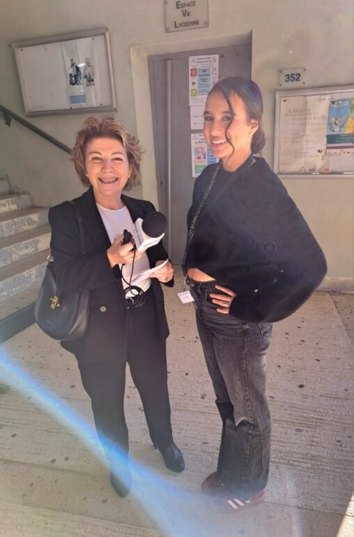 Liliane Dray de Radio Aviva avec Syrine, Lycéenne – Opération Téléthon 2025 au lycée Georges Pompidou de Castelnau – Liliane Dray