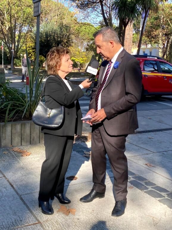 Liliane Dray de Radio Aviva et Stéphan Rossignol, Maire de la Grande-Motte et Président de la communauté du Pays de l’Or – Cérémonie de commémoration de la signature de l’armistice du 11 novembre 1918 – Liliane Dray